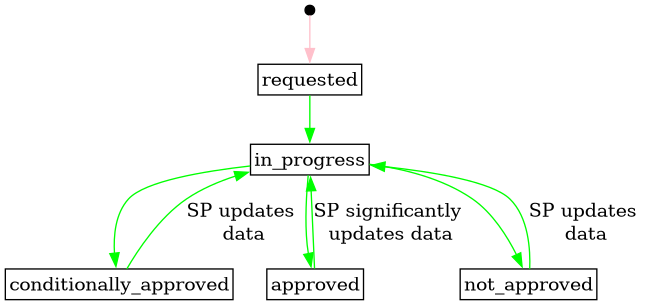 | SPGGP-VAL002 | If status is set to not_approved, then prequalified_at must be unset in the resource or by the request. |